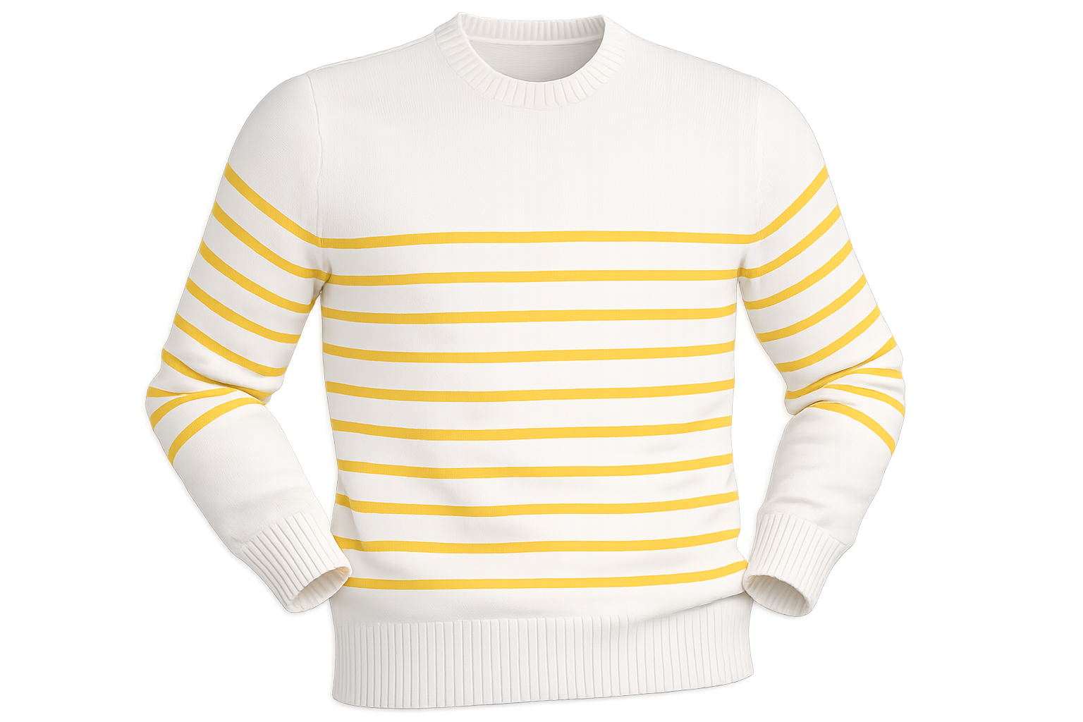 Embrace timeless style with this beautifully crafted cotton knitwear. Made from 100% premium cotton, this cream-colored sweater features elegant yellow stripes that add a cheerful pop of color to any outfit. The soft, breathable fabric ensures all-day comfort while the classic crew neck design makes it perfect for both casual and smart-casual occasions. A versatile wardrobe essential that pairs effortlessly with jeans, trousers, or skirts.