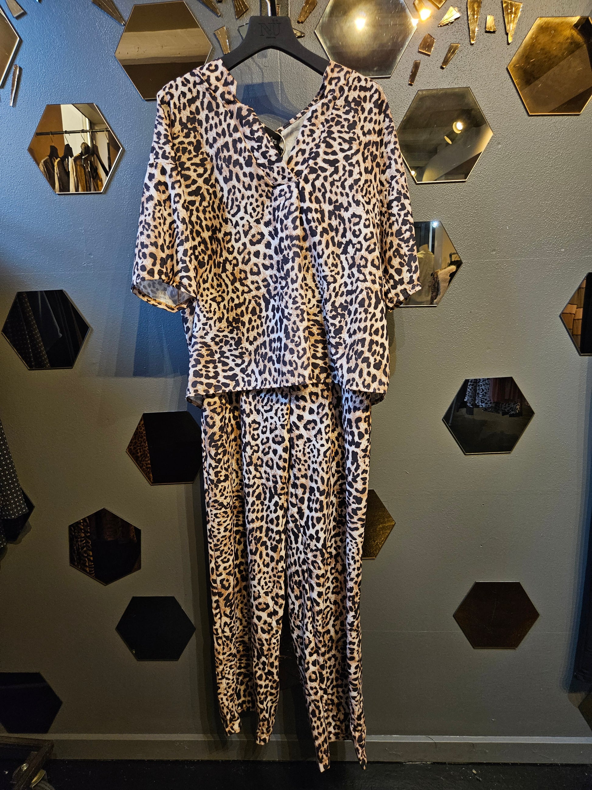 Leopardprint todelt sæt - Afslappet skjorte og bukser